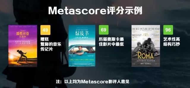 以今年奥斯卡获奖影片为例,由于文化差异因素影响,虽然本届奥斯卡最佳影片《绿皮书》在国内口碑、票房双丰收,然而美国市场却并不看好这部影片,本片在Metascore上仅获得69分,为历届奥斯卡最低;而艺术性较强的影片《罗马》评分则高达96分。