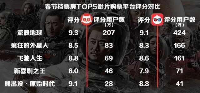 所以,对于使用购票平台查看影片评分的用户来说,虽然最为方便,却需要综合评分人数、影片出品方等多方面因素,来判断此评分是否具备参考价值。