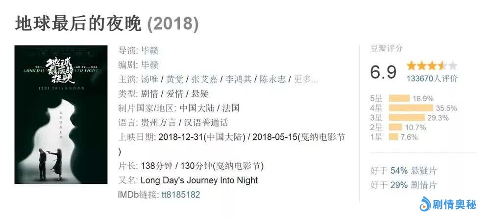以《地球最后的夜晚》为例,上文提到本片豆瓣评分为6.9分,虽然同样有用户在映后因为其营销而打低分,但整体评分则更加专业、客观。