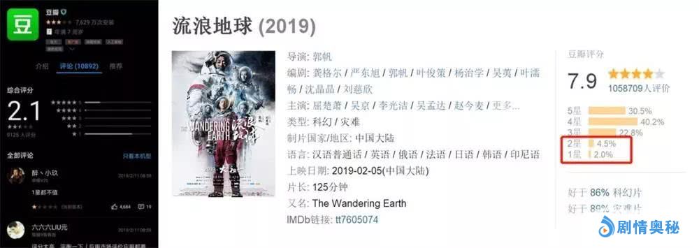 在国内,评分网站同样发生着相似的事件,春节档由于《流浪地球》在豆瓣遭遇恶意刷差评,导致豆瓣APP在应用软件平台上被持续打低分,该APP评分一度降到2.1分。