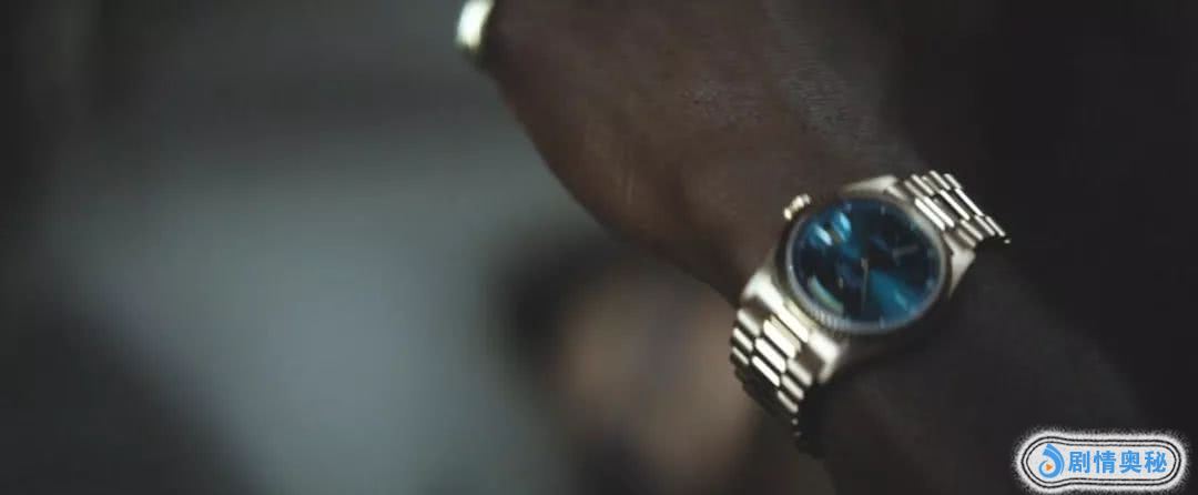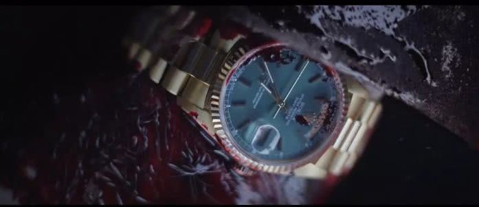 当镜头拉近,这是一个领带上戴着绿宝石,手腕上戴着劳力士,身着高级西装的男性尸体。