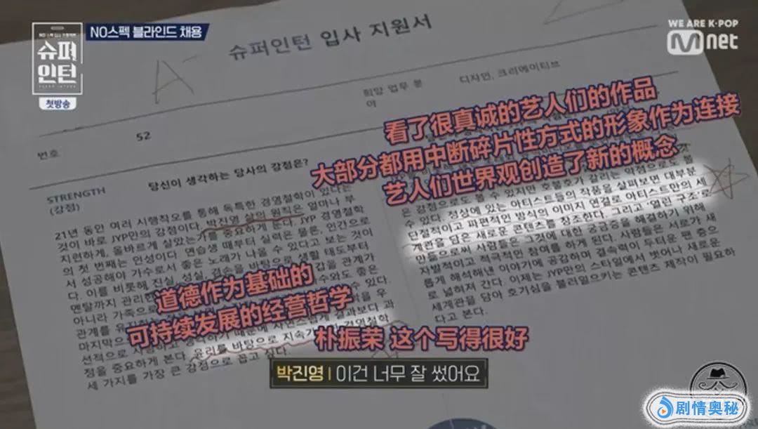 今年1月份,韩国国内三大经纪公司之一的JYP与电视台Mnet合作推出了《超级实习生》,不看应聘者的学历、人脉、性别,而是寻找真正拥有实力、创意满满、执行力强的优秀人才。