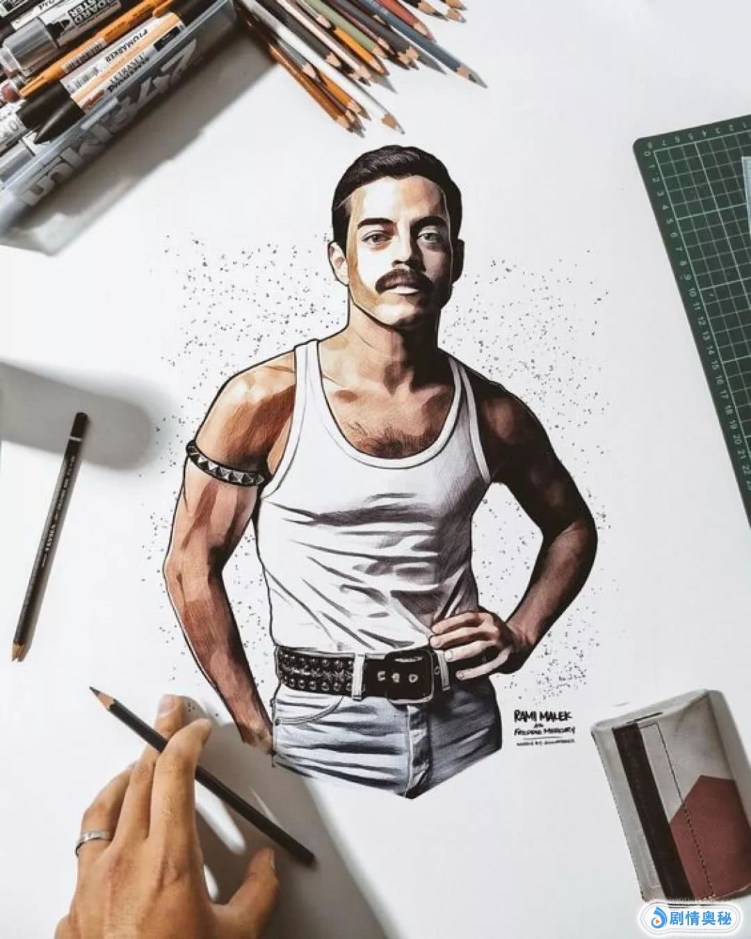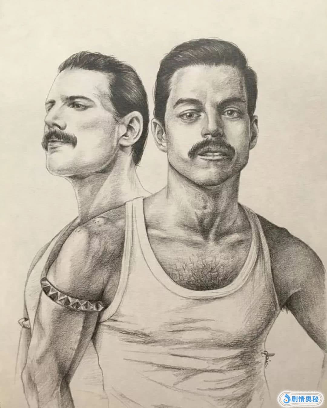 海外网友Ivkaplo的铅绘作品,将影片中的皇后乐队一众成员的形象高度还原,这波操作简直666。