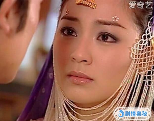 除了当圣女的时候造型好看,就是刚出场的时候,虽然脸上有一块假的疤痕,但是也能看出颜值之高。后来在地下疤痕不小心碰掉,撕开以后就很漂亮了。当时那个渣渣男张无忌,还眼前一亮呢。由于是小丫鬟,所以在剧中的服装并不多,其中印象最深的就是这套粉色的,额头上有颗粉色的珠子,期间还换成过蓝色珠子。
