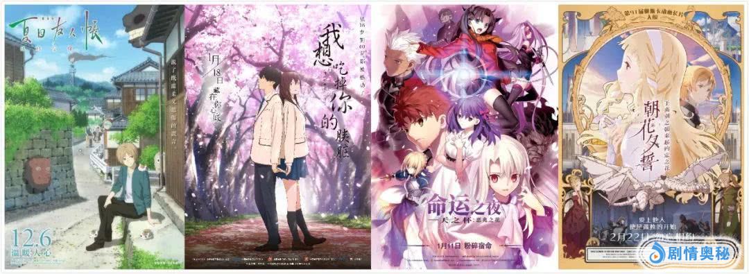 自1月11日起,《命运之夜——天之杯:恶兆之花》《我想吃掉你的胰脏》《朝花夕誓》和《夏目友人帐》四部动画接连上映。