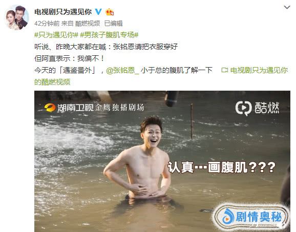 不过别看正片如此霸道给力,花絮中的于总不像剧中那样放得开。看着粉丝们太热情,官博也毫不客气地晒出了于直“出水芙蓉”的花絮(3月11日),顺便实力揭穿了一回撩妹背后的真相,小于总的腹肌了解一下!