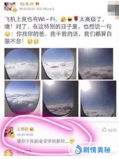 早在2015年5月份,王思聪在微博上讽刺范冰冰是“毯星”,范冰冰发微博回怼王思聪“你找你的爸,我干我的活”,结果惹恼王思聪,直接评论打出了“家印”二字,还回复网友说范冰冰介入别人婚姻当第三者。