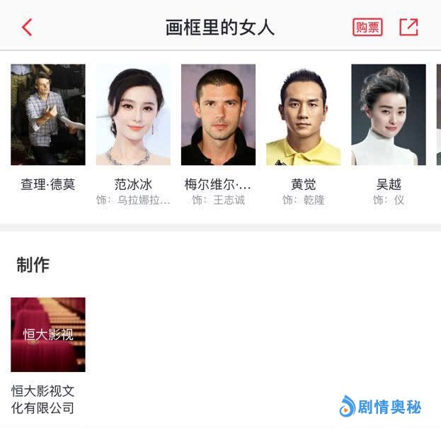 到了2013年,恒大力捧范冰冰的意图很明显了,独家投资了电影《画框里的女人》,这部电影主要在承德和横店取景,作为一部共同文艺片,找来法国导演查理德莫执导,电影2017年12月才在法国上映,这样一部电影显然不是为了挣钱,而是将范冰冰推向国际。