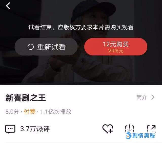 一直以来,很多视频网站都有热门大片需要付费才能观看的限制,去年的《复仇者联盟3》至今仍需购买才能观看,会员2.5元,非会员5元。而这部《新喜剧之王》作为星爷最新力作,虽然在视频网站上映,但同样需要付费才能观看,会员6元,非会员需要12元,这价格可以说相当高了。