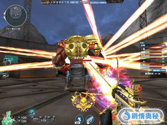 然后就是更加强悍的武器激光毁灭者了,在出现了新的挑战地图之后这把枪也是火热了很长时间,不仅拥有霸气的造型外观而且没有后坐力,还能够发出可怕的激光直接贯穿一条线上的所有敌人,我们直接遵守一个地方开激光就已经可以横扫全图了!不过要小心不要扫到正在三楼平台热身的坤坤哦!