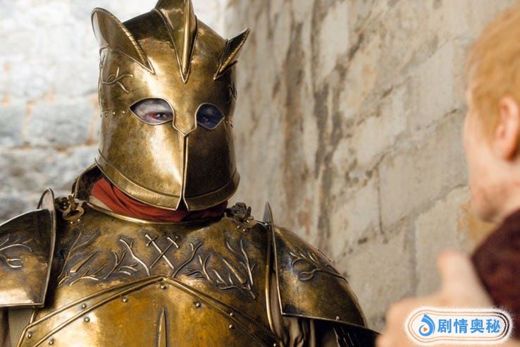 28秒处,我们终于得以看到传说中的黄金团。但那个金发的男人是谁?他肯定不是攸伦·葛雷乔伊,也不是詹姆(詹姆的头发现在很短)。会是原著《冰与火之歌》中的伊耿·坦格利安吗?也就是小格里夫吗?到目前为止他还没有出现在剧中。还有个可能是黄金团团长哈利·斯崔克兰。