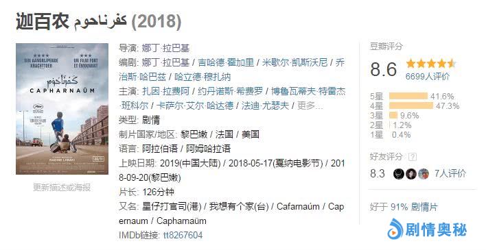 在豆瓣拿下8.6分,超过了最佳外语片的《罗马》(8.1),四星以上好评接近90%。