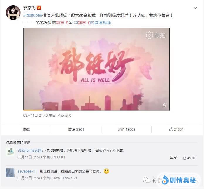 除此之外,郭京飞还不断和网友互动,而网友纷纷准备开口大骂苏明成的时候,郭京飞更是给予支持和大气,奉劝网友不要忍,该骂就骂,甚至郭京飞还想参团一起暴打苏明成,满满的求生欲望。不可否认,在《都挺好》热播后,郭京飞演技一直备受关注和认可,除了此次暴打明玉上热搜,之前诉苦的那一段更是彰显实力,演技上一度日臻成熟,得到观众和业界人士好评。