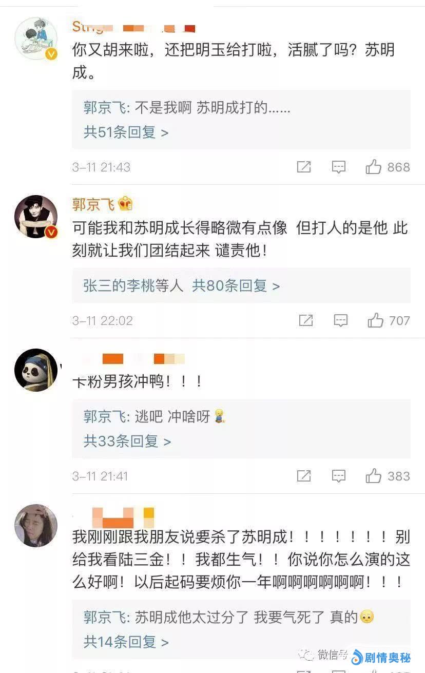 其实早就在该剧开播后,苏明成一角就备受关注,而且他与苏明玉的关系和纠纷也随着该剧越演越烈,直至预告片发布后,观众按耐不住心中怒火,才得以要组团打苏明成,甚至还有爆粗口。庆幸的是,电视剧始终是电视剧,很多情节都是剧情需要,而且饰演苏明成一角的演员郭京飞也在预告片发布后,同一时间在微博上发布了该剧拍摄的幕后花絮,以及之前在电视剧《龙门镖局》被姚晨欺负的画面,来一解网友和观众“心头之恨”。