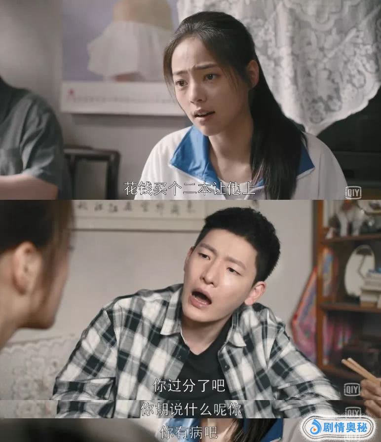 妹妹苏明玉嘲讽他花钱上的二本,这是事实嘛,他不行,受不了自恋损伤,反口就骂「你有病吧!」