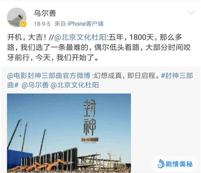 据悉,该片将取材于国家喻户晓的古典神魔小说名著《封神演义》,讲述一场三千多年前人、仙、妖之间旷日持久的神话战争,谱写一部波澜壮阔的东方神话史诗。影片预计将于2020年、2021、2022年上映。你是否表示期待呢?码字不易,欢迎关注点赞,留言分享。您的支持是我们写作最大的动力。ps:奉上一波剧照一睹为快