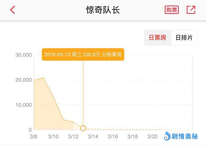 其次是,《惊奇队长》后劲不足,工作日票房下滑严重。观察《惊奇队长》上映五天的票房走势,周五首日卖出2.1亿,周六2.2亿,但到周日就下跌到1.4亿。接着周一工作日,仅为4300万。票房下滑不是其他电影竞争,完全是自己后劲不足,周二票房进一步下滑,至此,《惊奇队长》已经很难再有出色的表现了。