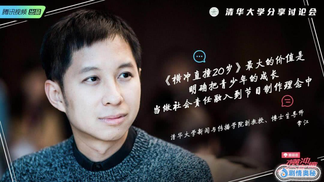 在清华大学新闻与传播学院副教授、博士生导师常江看来,青少年的成长应该成为电视节目或者网络综艺节目需要考量的目标和对象。同时,他对《横冲直撞20岁》的正向价值表达了肯定:“这档节目最大的价值是它明确地把青少年的成长当做社会责任融入到节目制作理念中”。