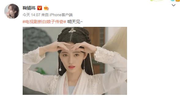 自然,小白还没揭开真面目,大家也无从得知令她心神荡漾的到底是何人。但有一点能肯定的是,明天(3月14日)情人节,必是有大喜事发生。根据小鞠同学悄悄放出的暗示分析,应该和她主演的新剧《新白娘子传奇》有关。不然小可爱怎么会带上电视剧的话题?