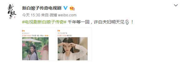 小白预告新物料,官博当然不会缺席。通过它给出的提示,大家对明天要发表的内容有了进一步的了解。看到千年等一回几个字,大家猛然想起老版《新白娘子传奇》的主题曲《千年等一回》。小鞠这是要开唱的节奏?而出演男主许仙的于朦胧预告的文案也与官博相同。另一种可能则是官配一起倾情献唱。如此同框,宣传效果应当更给力。
