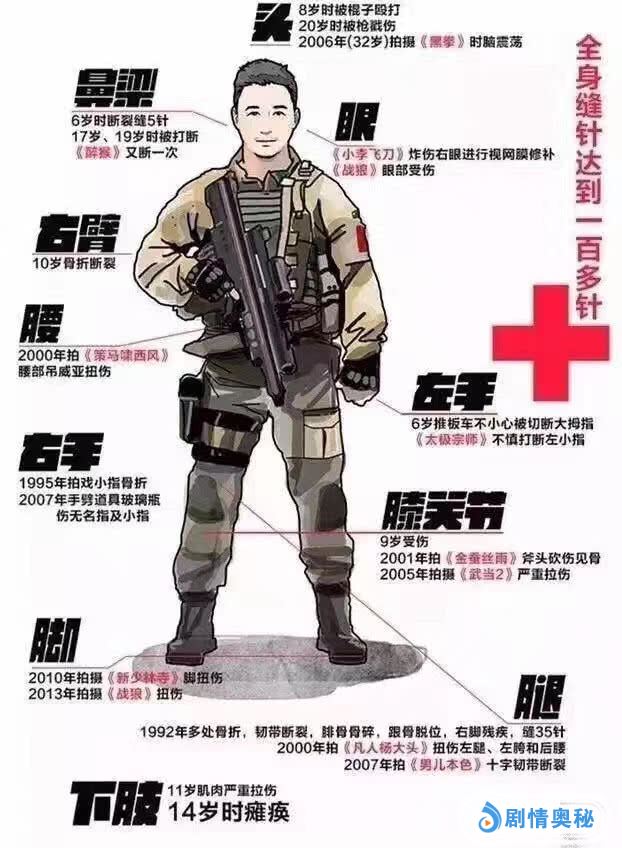 这些伤痕就是吴京从功夫小子到功夫明星的勋章啊,有人担心,吴京太拼了,身上这么多伤,以后还能拍动作片吗?