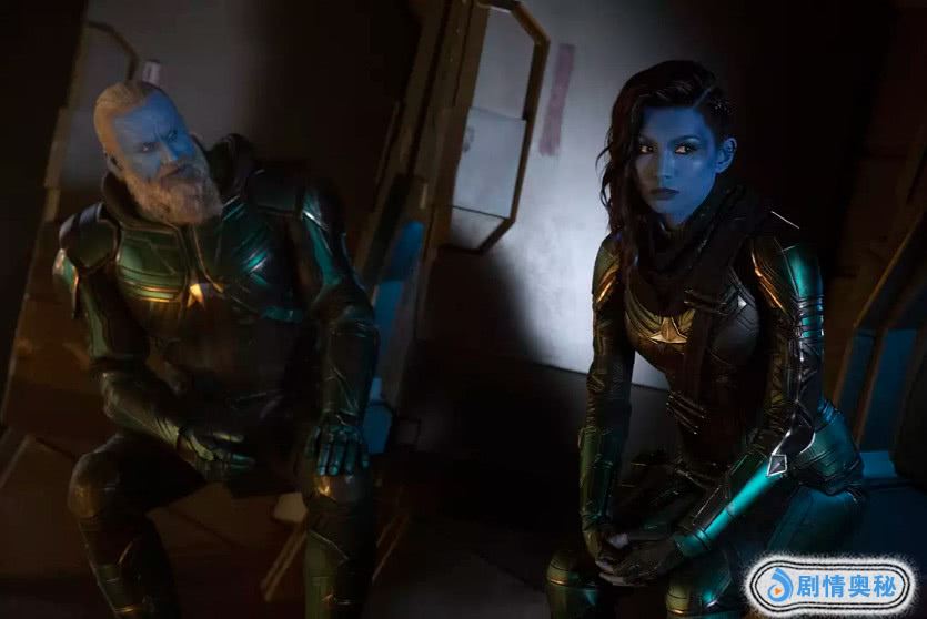 但在漫威电影里,帅气是不可能帅气的,甚至还有点蠢,生气的时候唯有眼睛的表现力突出。乍看之下,你会觉得这是把美玉当砖头用,但其实,漫威向来尊崇“演员适应角色”的规则。说到底,在形象上,罗南是合适的(图为惊奇队长罗南妆容)。