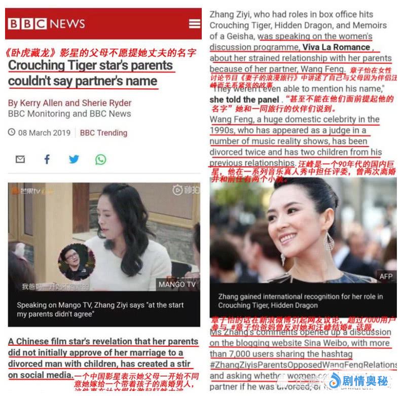 BBC用的标题是:《卧虎藏龙》影星的父母不愿提她丈夫的名字。