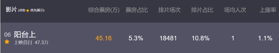 截至3月13号《阳台上》离上映只剩2天预售票房才45万,预排片仅为10.8%。在《惊奇队长》正面竞争中恐怕会败的很惨