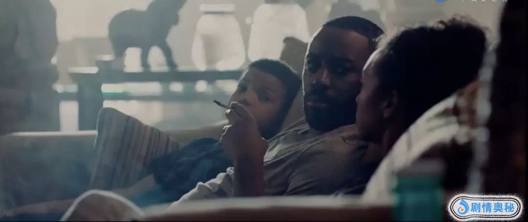 第二个,黑人小孩跑回家,一家在沙发看电视,黑人一脸黑人问号看着他老婆。