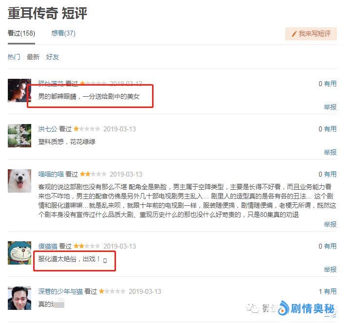 首部后,收视率上占据了CSM55城市网收视率0.553%的收视率,以及排在了同时段排名位居第二,与此同时,该剧在爱奇艺、腾讯视频、优酷视频等多个平台同步播出后,同样也获得了不菲的网播量,在CSM全国网收视率高达0.21%,位居同段排名第二。可惜的是,该剧热播后,在获得良好的收视率开局之际,该剧的口碑却呈现除了两极化,甚至遭遇了豆瓣网友给予清一色一星差评。