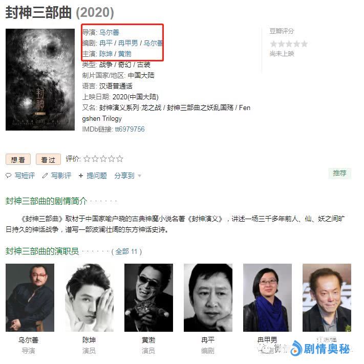 从2004年首部独立电影《肥皂剧》获得韩国釜山国际电影节国际影评人奖之后,乌尔善先后还执导了《刀剑笑》、《画皮2》以及《鬼吹灯之寻龙诀》等三部经典影片,而且在《寻龙诀》获得好评的同时,他也获得了第33届大众电影百花奖最佳导演奖。如今由他执导《封神三部曲》,除了影片质量上得以肯定,更是给影迷打了一剂强心剂,使得影迷期待值爆表。