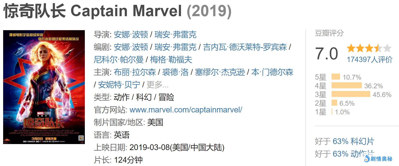之所以能够取得这么高的票房成绩,可能最主要的原因还是因为国内观众的贡献吧,在国内正式上映后,国内观众贡献7亿,强势拯救了《惊奇队长》的总体票房成绩,算是给了《惊奇队长》注入了一针强心剂了,不得不说漫威的电影在国内还是非常吃香的了。