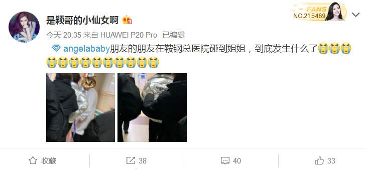 13号晚上8点35分,有粉丝爆料Baby去鞍钢总医院看病,本以为是乌龙,结果点开大图后发现确实就是Baby杨颖本人,她身后的衣服上还贴着“angelababy”名字标签。现场还有工作人员陪同,也有穿白大褂的医生。