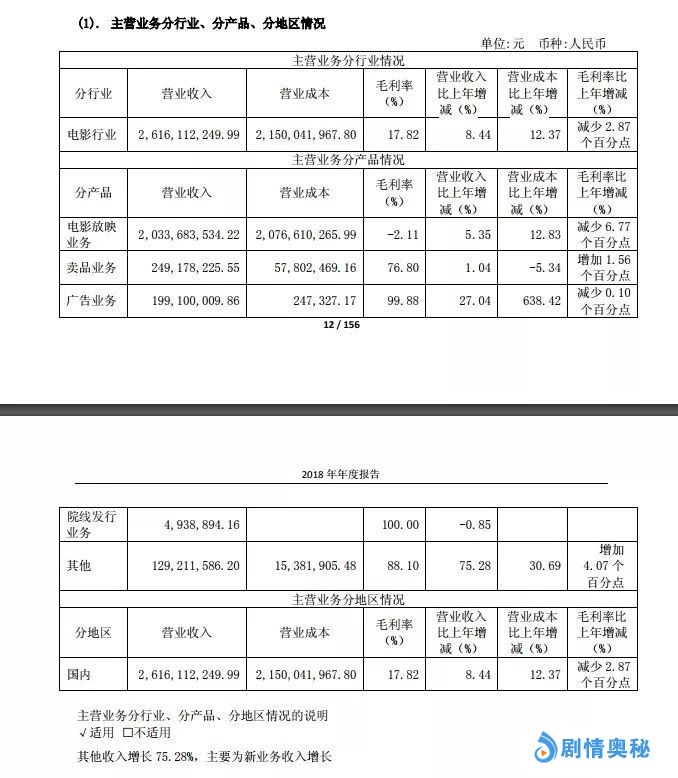 横店影视的放映业务毛利率从2017年的4.66%下降到2018年的-2.11%,这已经是连续两年下降。不光是横店影视面临这样的问题,同在院线十强的上海电影放映业务(旗下上海联和院线)也成为赔本生意,根据其财报显示2017年毛利率下降到-5.5%。
