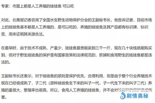 实际上,据北京青年报报道,目前市场上的娃娃鱼基本都是人工养殖的,食用与贩卖都是合法的,而且并不会对物种保护造成伤害。