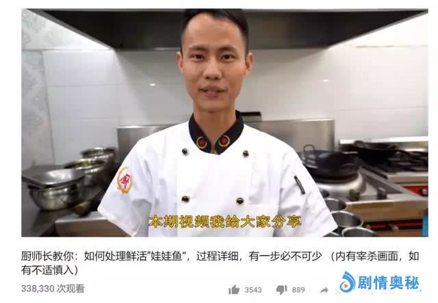 视频中,他从展示、处理食材开始,
