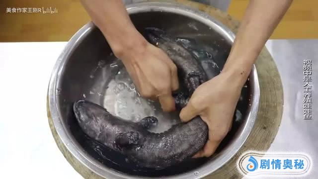 他这次选用了一条新鲜的娃娃鱼作为食材,