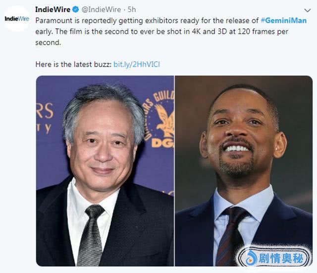 李安导演执导,威尔·史密斯主演的《双子煞星》定档于2019年10月11日北美上映,李安导演将延续他在《比利·林恩的中场战事》中采用的120帧/4K/3D的格式,为此派拉蒙影业发电影片段给影院,测试播放设备。