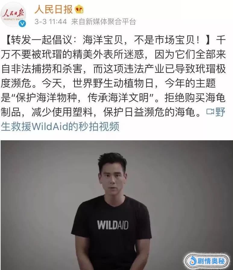 在世界野生动植物日当天,人民日报也转发了彭于晏的公益短片,并共同呼吁:海洋宝贝,不是市场宝贝!
