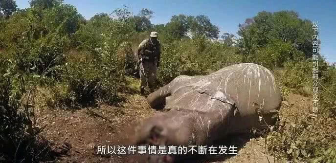 结果发现了惨死的大象倒卧丛林,脸因为盗猎者要获取完整的象牙而被砍掉,象鼻就被丢在了一遍,鲜血淋漓,尸骨不全。