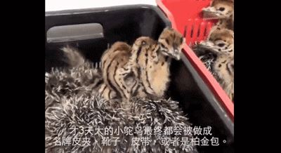 刚出生仅三天的小鸵鸟,还没有和父母相处几天,就会被抓走。