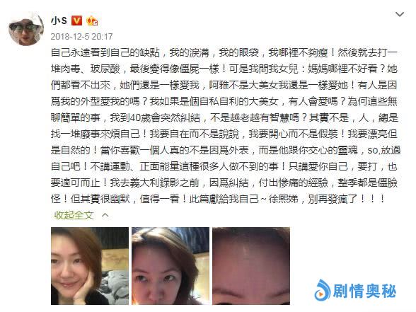 和大S一样,小S乐于在微博上展示最真实的自己。