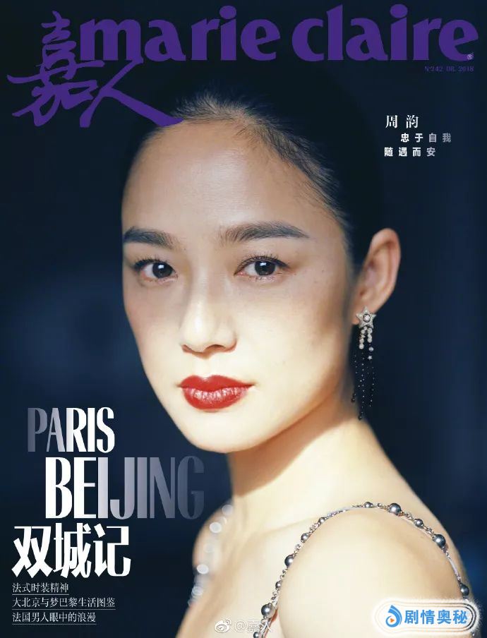 没有过厚的妆容,简单的眼线简单的睫毛膏再加一个橘调红的唇膏,清晰可见的小雀斑布满脸庞,没有一丝违和,反而显得俏皮可爱,这就是最真实的周韵。