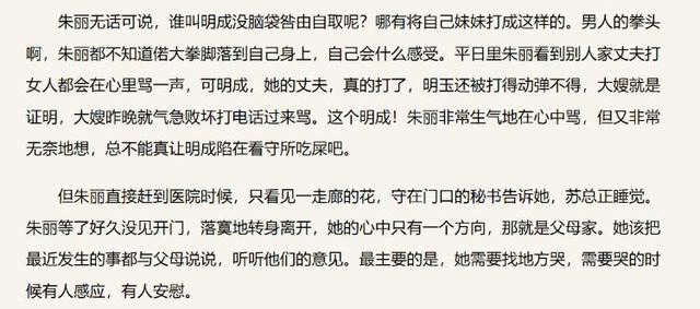 负责任地告诉各位,朱丽的人设没崩,之后还会出现大反转,依旧是人美心善的小仙女。最新高潮剧情:苏明成殴打明玉也为接下来的剧情埋了伏笔,朱丽父亲经过这一事,怀疑明成一直就有暴力倾向,朱父真真是预言家。