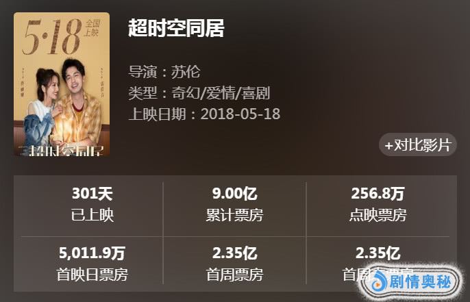 《超时空同居》作为中小成本影片,制作成本仅3000万左右,然而凭借优秀口碑实现了票房逆袭,最终票房高达9亿,投资人赚得盆满钵满,完全称得上票房口碑双丰收,雷佳音终于证明了自己,谁还能说他扛不起票房?