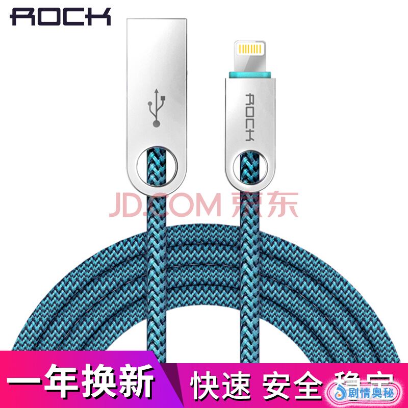 洛克(ROCK)苹果数据线 锌合金手机充电器线 支持iPhoneXS/max/XR/X/8Plus/7/6s/5s/iPad 1米 孔雀蓝