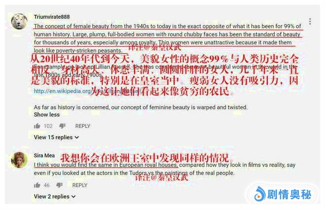 还有外国网友的观点认为,这也许跟不同时代的审美不一样有关,而且皇室的审美也和普通大众不一样,并表示欧洲王室也有这样的情况,王室女子没有民间女子美,因为贵族都以富态丰满为美。