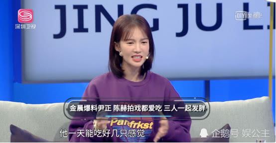 金晨表示当时自己和尹正以及陈赫三个人当时在拍《极品家丁》这部剧,由于三个人都很爱吃,所以三个人的脸是一天比一天大,进组的时候还是小脸,拍摄过程中大到不行!