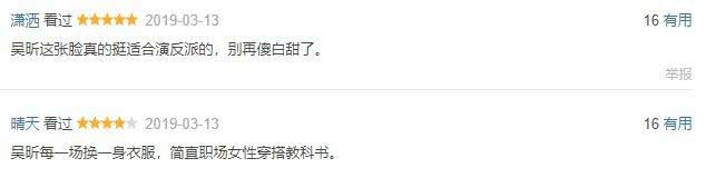 网友也对吴昕的演技表示肯定:不再演傻白甜,而是职场佳丽,还是反派,看来吴昕找对戏路了。