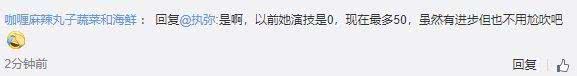 当然吴昕的演技也没有好到那么夸张,有网友的话说的比较中肯:以前她演技是0,现在最多是50,虽然有进步但也不用尬吹吧。